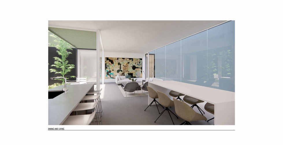 Commissioned by a prominent local art figure, Sample Alley breathes new life into a nondescript East Sacramento alleyway. Neatly contained within a 4,003 square foot infill lot, the residence prioritizes ample wall space for an extensive art collection with inward-focused views— joining art with nature through two expansive internal courtyards and elongated reflection pool.